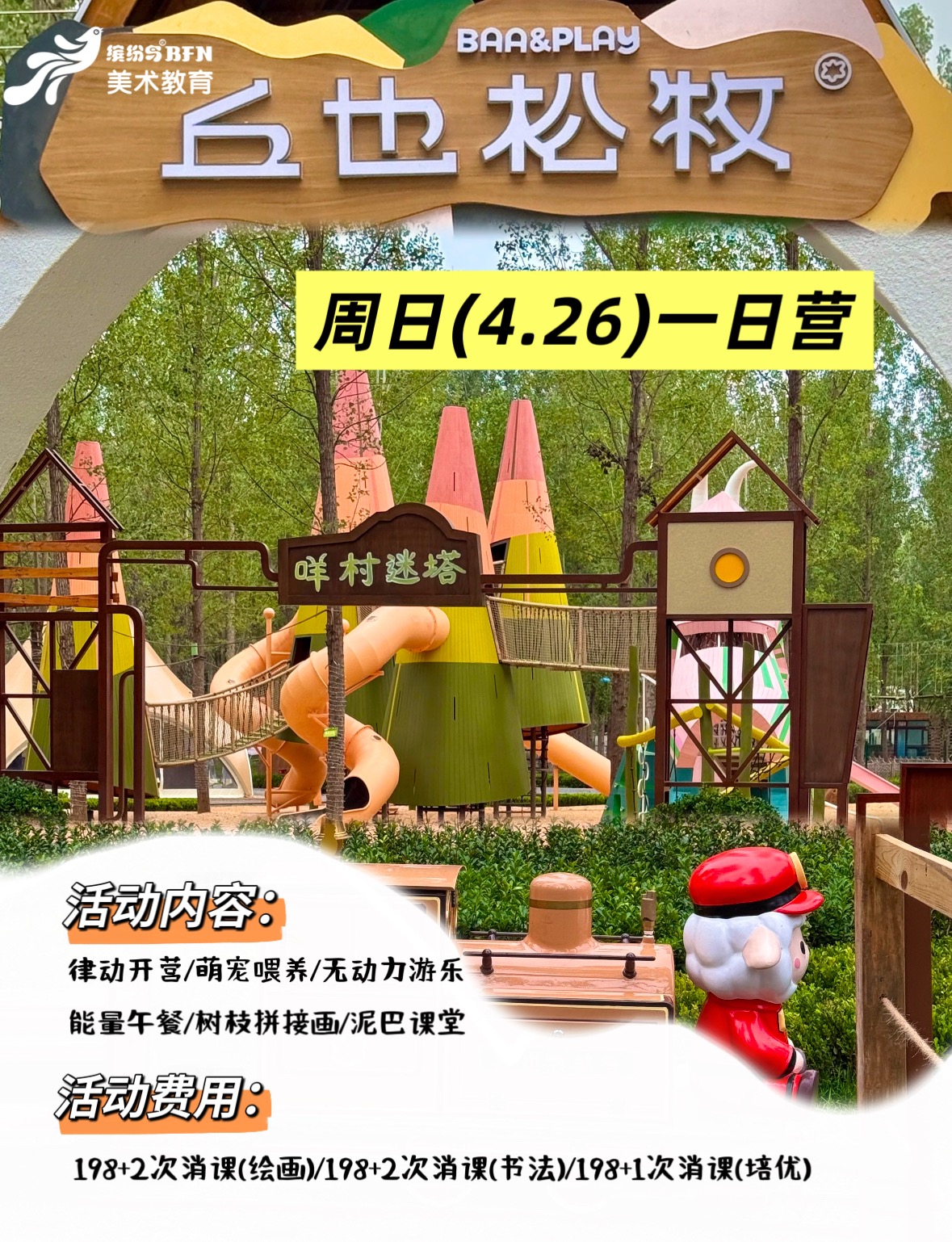 活动特色介绍:【高新校区、西稍门校区、吉祥校区专属】律动开营/萌宠喂养/无动力游乐园/能量午餐/树枝拼接画/泥巴课堂